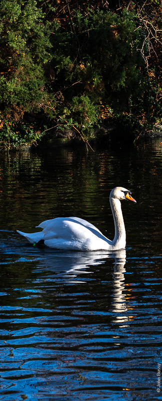 A swan on the lake in Southwark Park in low winter sun. (Jan23)